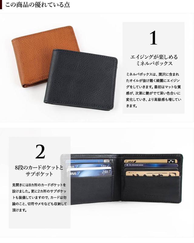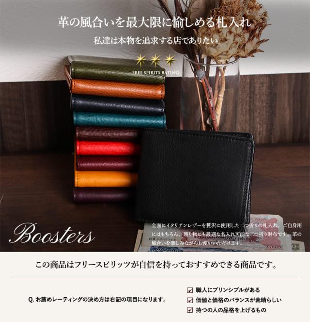 財布 二つ折り財布 メンズ レディース プレゼント 名入れ 名前入れ 無料 ギフト 本革 革 皮 レザー ミネルバボックス 札入れ シンプル おしゃれ ブースターズ Boosters コンパクト財布 サイフ カード大容量 カードケース 即日発送