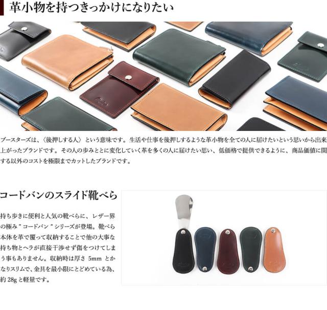 靴べら コードバン シューホーン 名入れ 名前入れ 無料 ギフト プレゼント メンズ レディース 本革 革 皮 レザーコードバン ブースターズ Boosters 靴ベラ 携帯用 スライド式 コンパクト ミニ シンプル おしゃれ 軽い 高級
