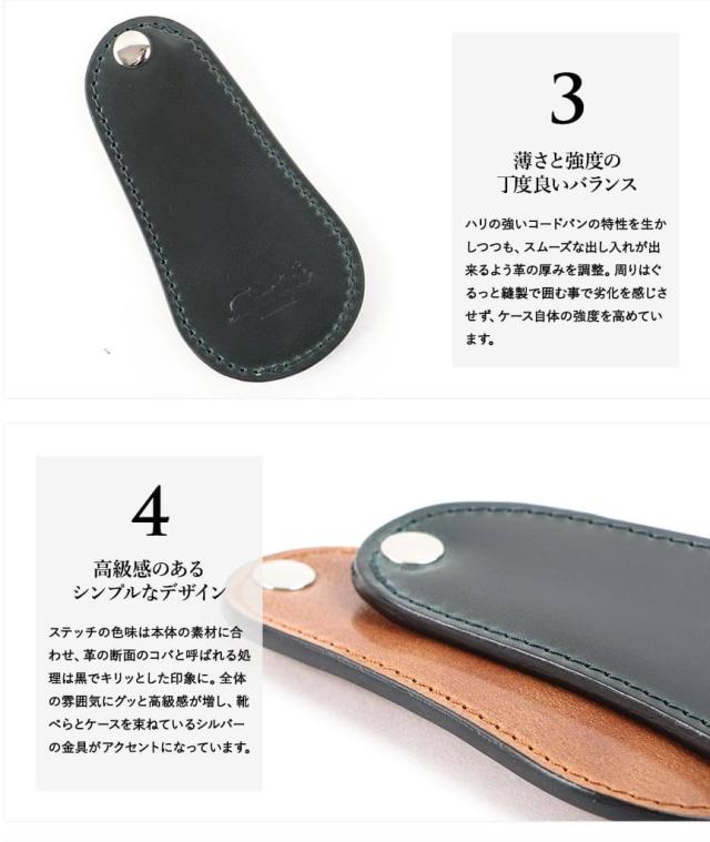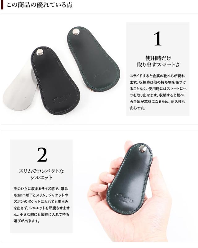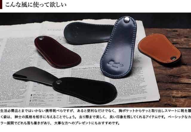 スマートさと品格を与えてくれるコードバン仕立ての携帯用靴べら