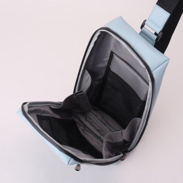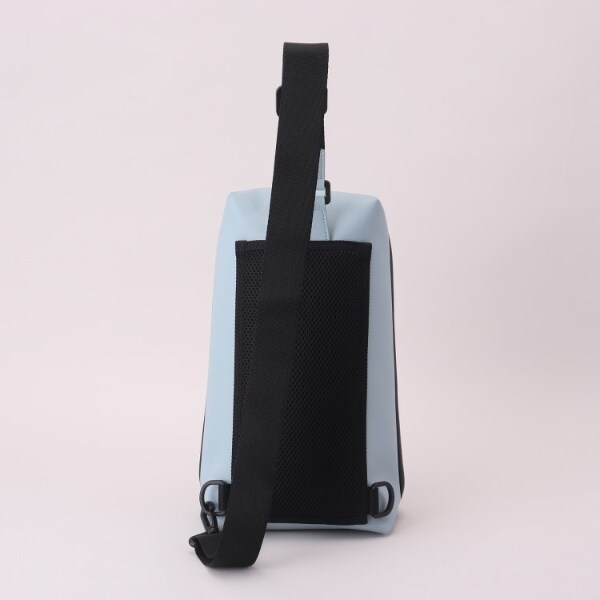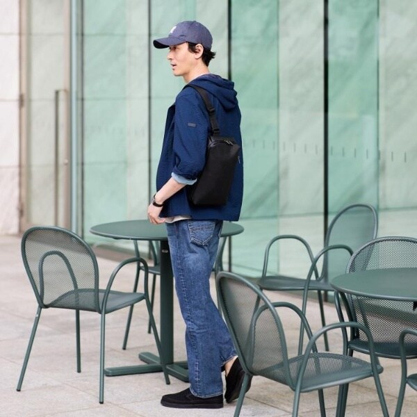とても軽いボディバッグはメインファスナーを止水ファスナーにすることで急な雨にも強い設計になっていて、口も大きく開くので、物の出し入れもラクなのも嬉しいポイントです。