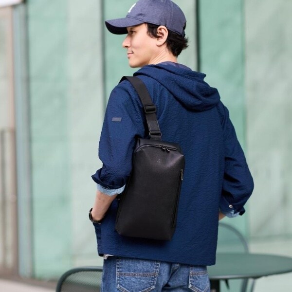 軽くて撥水性もある人工皮革CORDLEY(R)を使用した、環境にも配慮したボディバッグ