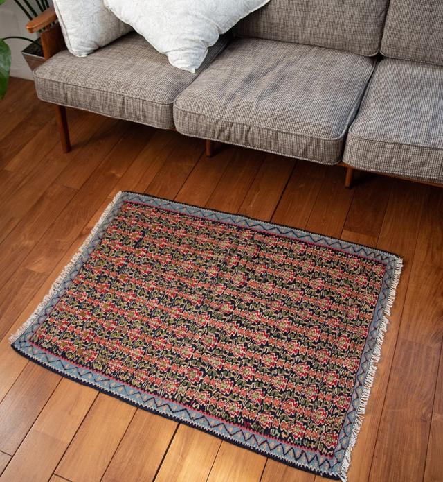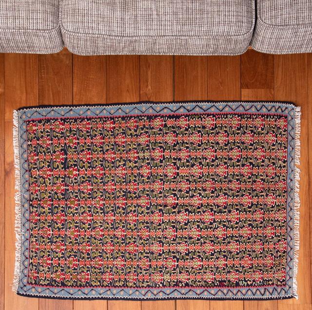 【送料無料】 【一点物】バルーチ カル ムハマディ族 遊牧民による草木染め手織りトライバルキリム 曲線織り 約97cm x 76cm / Kilim 絨毯 ラグ アジアン インテリア エスニック