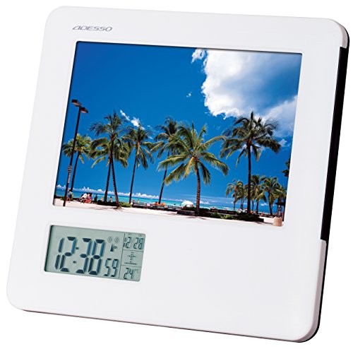 ADESSO(アデッソ) 目覚まし時計 フォトフレーム 電波時計 温度 日付表示 ホワイト 8785