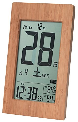 ADESSO(アデッソ) 置き時計 竹の日めくり電波時計 六曜 温度 湿度 日付表示 記念日設定 置き掛け兼用 ブラウン T-8656