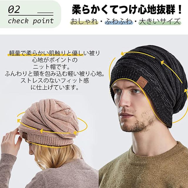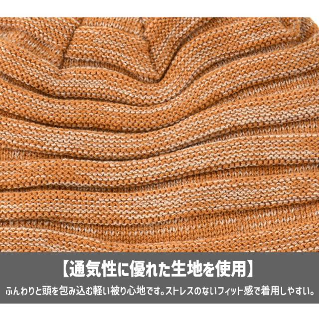 軽量で柔らかい肌触りと優しい被り心地がポイントのニット帽です