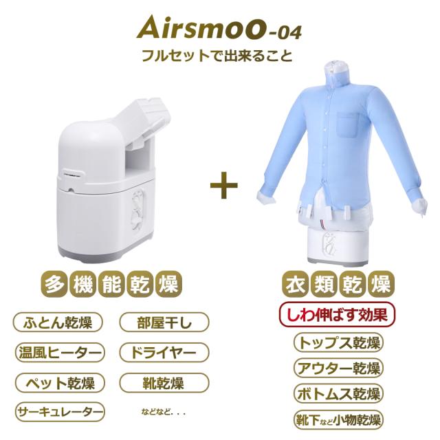 衣類乾燥機 布団乾燥機 Airsmoo-04フルセット ギフト ふとん アイロン しわ伸ばし 部屋干し 室内干し 乾燥機 小型 一人暮らし 省エネ 節約 新生活 新社会人 ワイシャツ 急速乾燥 洋服乾燥 おうち時間 部屋干しなのにアイロンのようなしわ伸ばしもできる。