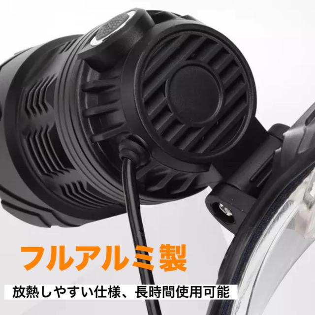 ヘッドライトで頭に装着するため両手が自由に使えます。ヘルメットライト替わり、ジョギング、夜釣り、ランニング、狩猟(狩り)、射撃、釣り、サイクリング、登山、洞窟探検&探索、夜間や暗いところの建築現場や工事現場、自動車整備の作業灯としても。
