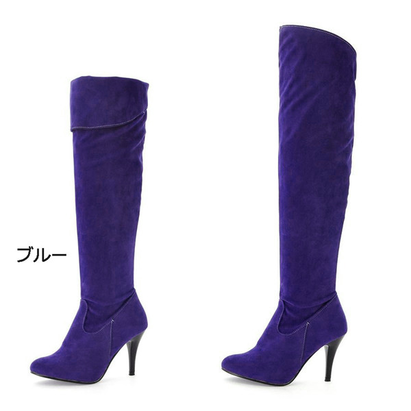 ロングブーツ レディース サイドジップ 美脚 22.0ハイヒール ヒール8cm スエード 大きいサイズ 28.0
