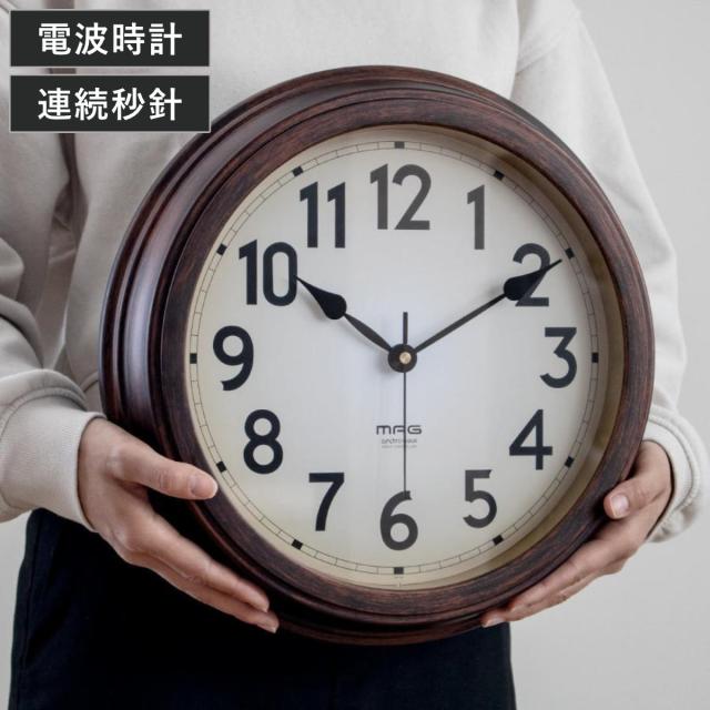 掛け時計 MAG 電波 大正館 アナログ ( 電波時計 壁掛け時計 掛時計 壁掛け かけ時計 とけい ウォールクロック クロック レトロ インテリア 電波式 連続秒針 リビング ダイニング オフィス 寝室 部屋 プレゼント おしゃれ )
