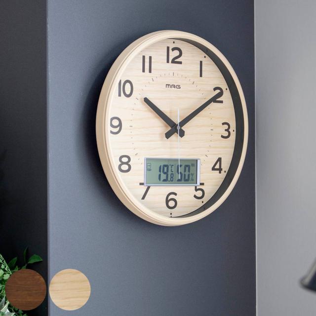 掛け時計 ゴーフル 電波時計 温度計 湿度計 MAG デジアナ アナログ ( 電波時計 壁掛け時計 掛時計 壁掛け とけい クロック 木目調 北欧 インテリア 電波式 温湿度計 リビング ダイニング オフィス 寝室 部屋 おしゃれ )
