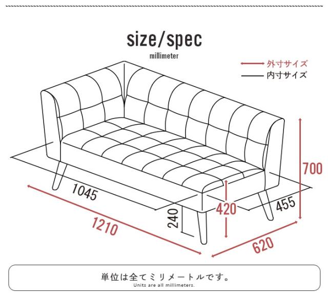 | 幅121×62×70cm (ロータイプ時:幅121×62×48cm) |