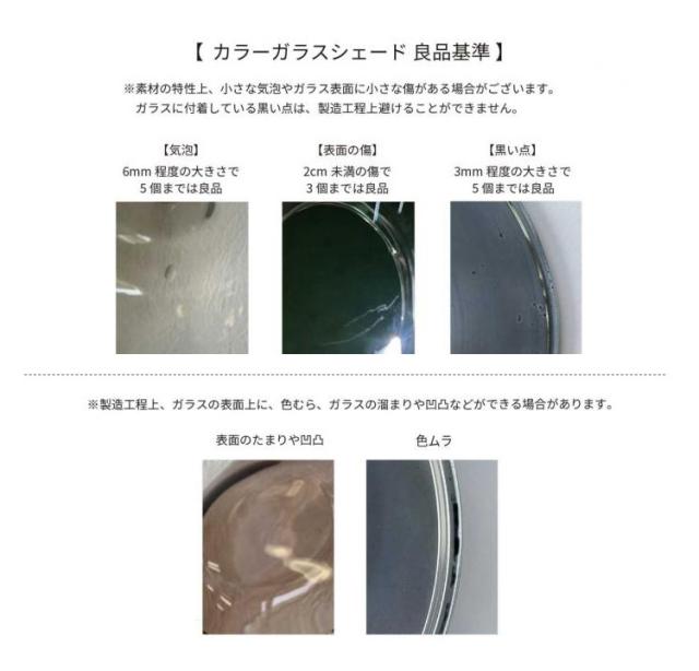 ※工場で職人の手により生産しているものが多いため、黒点や気泡が入っているものもございますが、良品の範囲内とさせていただいております。