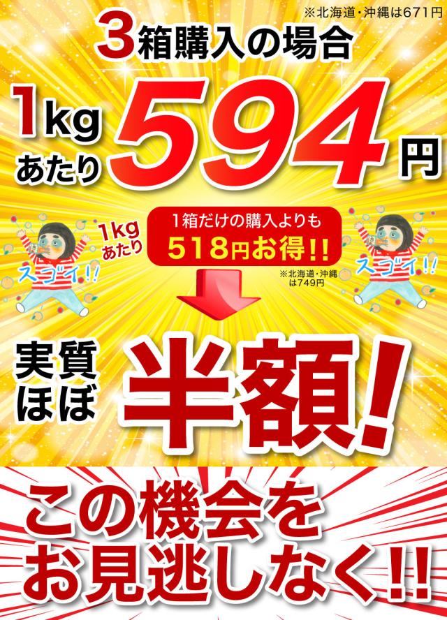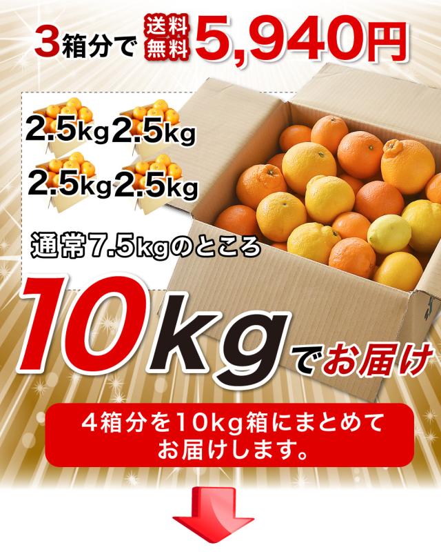 2.5kg×3箱お買い上げの場合は、1箱おまけが付いて10kg箱1つにまとめてお届けします。