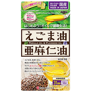 | 特徴 | はじめよう! オイルで健康生活 ●いきいき健康サポート! ●えごま油、亜麻仁油は、豊富な栄養価を持つ油として知られ、中でもα-リノレン酸を豊富に含みまます。 ●良質な実から取れる油を飲みやすいカプセルにしました。 ●健康的でいきいきと過ごしたい方の毎日を応援します。 ●安心できる安全品質MADE IN JAPAN ●毎日の健康にこの一粒 ●31日分 |
