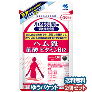 小林製薬 ヘム鉄 葉酸 ビタミンB12 90粒(約30日分)×2個セット メール便送料無料