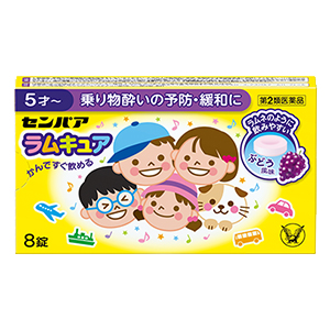 ●センパア ラムキュアは、ラムネのようにかんで飲めるチュアブルタイプの乗り物酔い薬です。