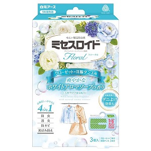 ミセスロイドフローラル クローゼット・洋服ダンス用 3個入 1年防虫 ホワイトアロマソープの香り