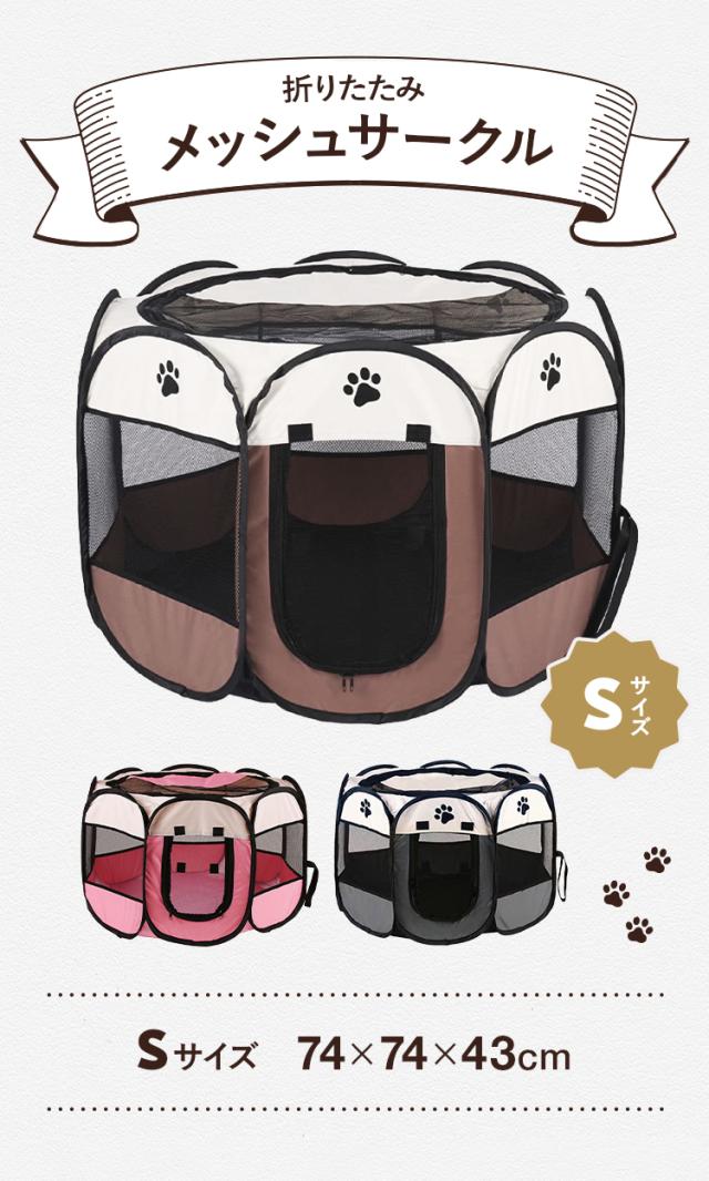 メッシュサークル 折りたたみ S 幅74cm 小型犬 飛び出し防止屋根付き 室内 屋外 持ち運び コンパクト レジャー アウトドア 旅行【送料無料】