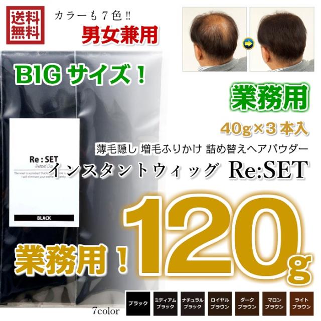 業務用 薄毛隠し パウダー 増毛 ふりかけパウダー 薄毛 女性 男性 兼用 詰め替え ヘアパウダー インスタントウィッグ Re:SET リセット 120g 業務用パッケージ