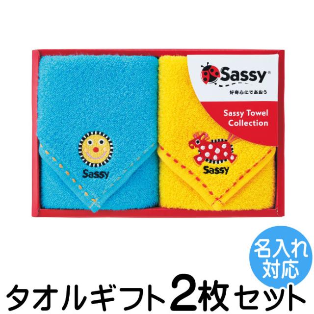 出産祝い タオルギフト タオル2枚セット 名入れ刺繍対応 Sassy サッシー お誕生日祝い 内祝い お返しに SA-7082