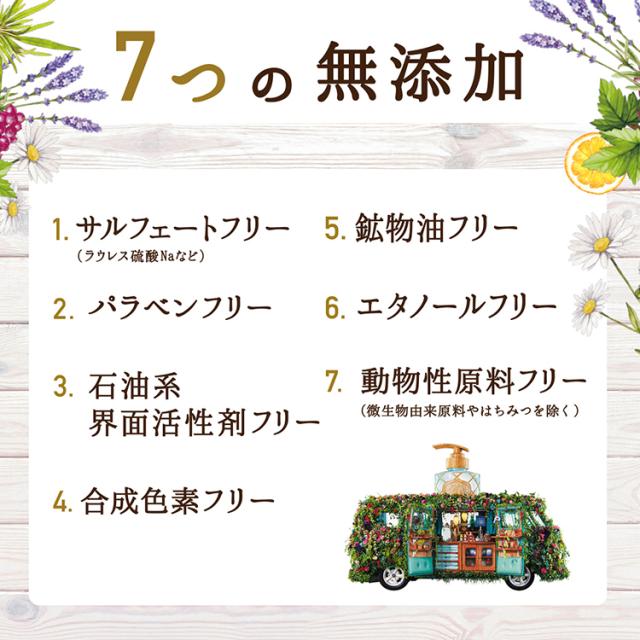 ●6つの無添加:サルフェートフリー(ラウレス硫酸Naなど)・エタノールフリー・パラベンフリー・鉱物油フリー・石油系界面活性剤フリー・合成着色料フリー