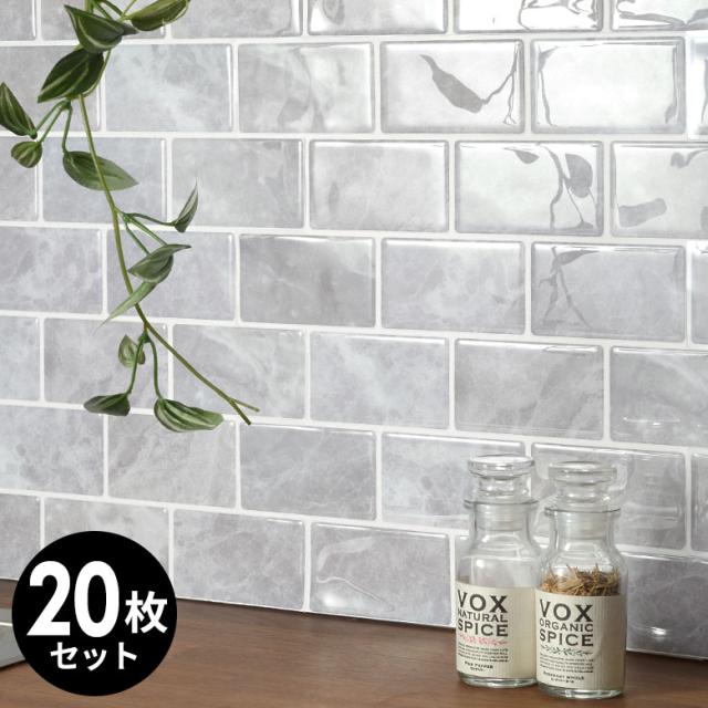 タイルシール 石目調 ストーンタイル 防水 20枚入り 天然石調 グレー 大理石 風 石壁 モザイクタイル [67075-20-gy]