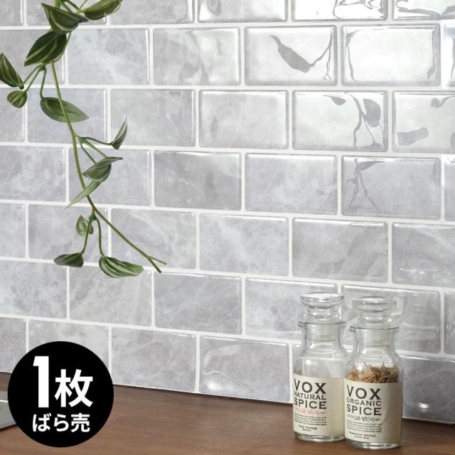 タイルシール 石目調 ストーンタイル 防水 1枚入り 天然石調 グレー 大理石 風 石壁 モザイクタイル [67075-gy]