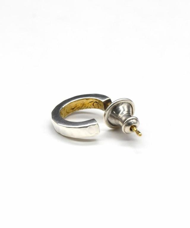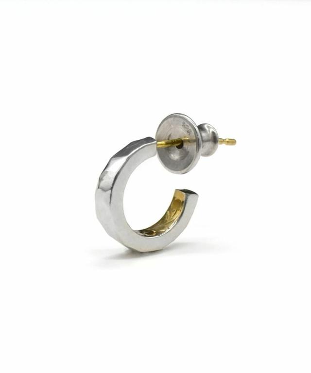 まるでハンマーで叩いたかのような質感が印象的なフープタイプのピアス。