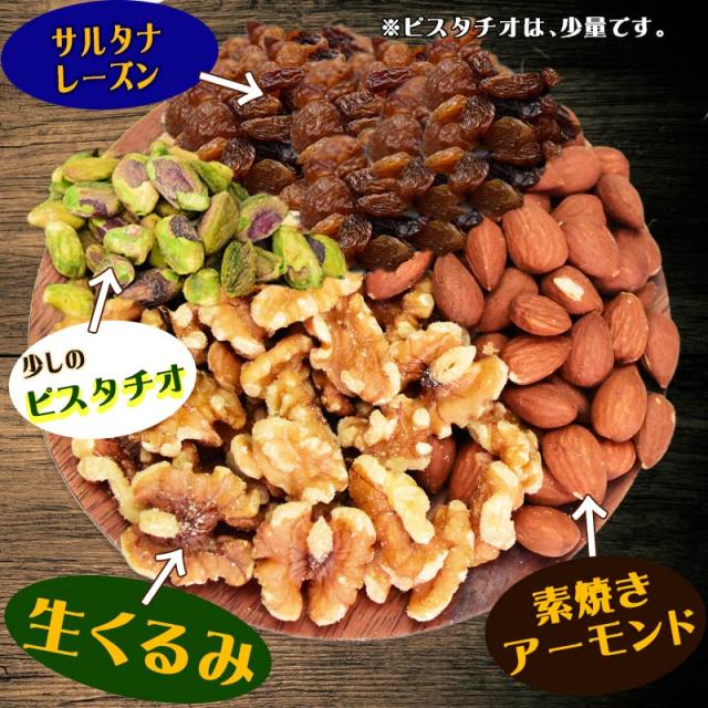 無塩 無添加 4種 ミックスナッツレーズン 450g 生くるみ 素焼きアーモンド ピスタチオ サルタナレーズン