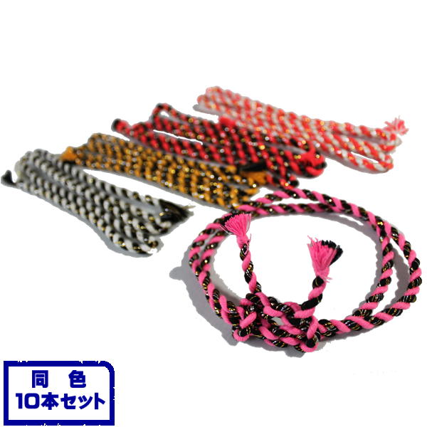 はちまき紐 二色10本セット【サイズ】長さ105cm 太さ6mm【素材】江戸打紐 レーヨン 芯なし(ねじりはちまき 鉢巻 きらきらハチマキ ハチマキ はちまき ハチマキ紐 ヘアーアレンジ ダンス ダンスキッズ 衣装)