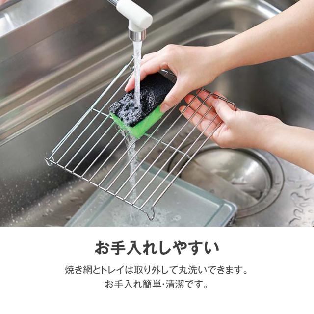 ●焼き網とトレイは取り外して丸洗いが可能で簡単・清潔