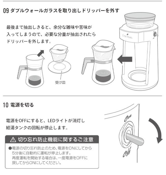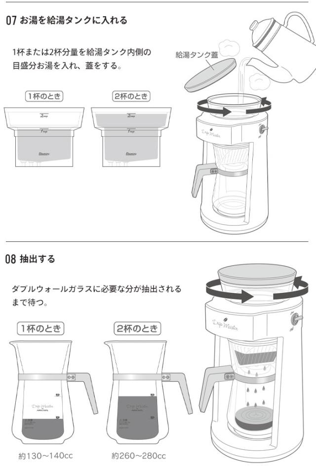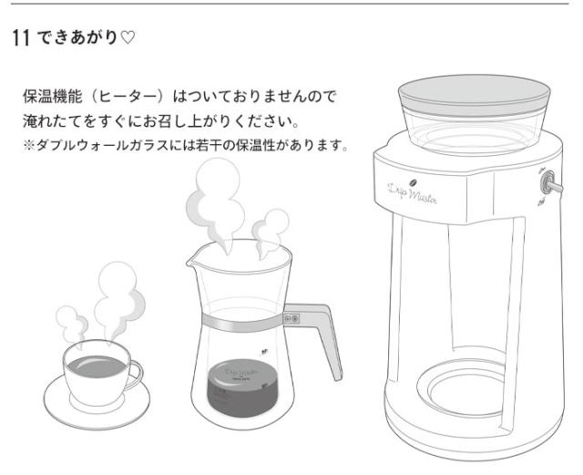 | ◇ タンク容量:最大350cc ◇ 抽出カップ数:1〜2杯 ◇ 回転速度:3周/分 ◇ 抽出温度:約88〜93℃ ◇ 切り忘れ防止(5分で自動停止) ◇ 紙フィルター対応 |