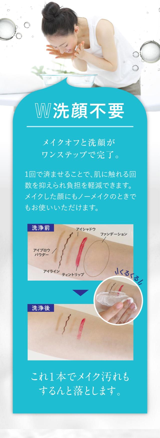 - 今までダブル洗顔をしていたが、摩擦レスが気になり初めて購入。これだけで落ちているのかなと心配だったが、私はスッキリ落ちて洗顔後もつっぱりはなかった。特典の石鹸も良かった。