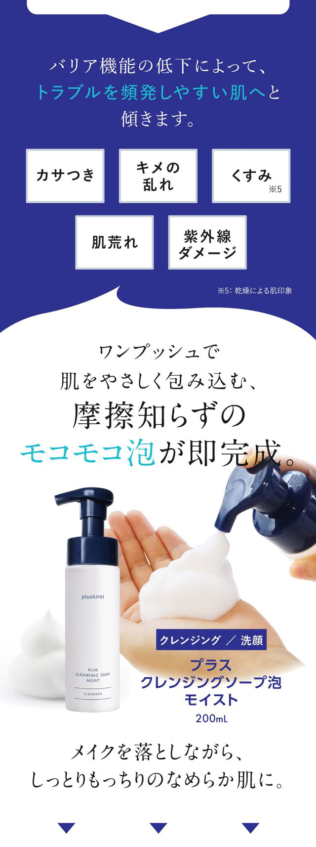| 商品名 | プラスクレンジングソープ泡 モイスト ●配合成分につきましては、上記の商品名をタップしてご確認ください。 |