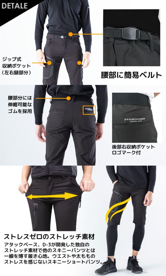 ショートジョガーパンツ アタックベース 23100-1cus D-3 スキニー 吸汗速乾 ストレッチ【春夏】