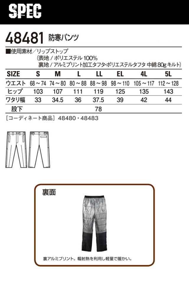防寒着 裏アルミ 防寒パンツ 自重堂 48481 男女兼用 メンズ レディース ズボン【秋冬】防寒服 作業服 作業着 自重堂
