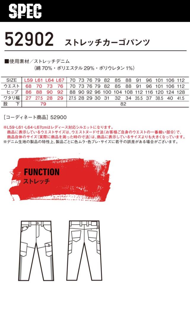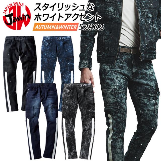 ジャウィン 作業服 カーゴパンツ 52902 ストレッチ デニム 男女兼用 メンズ レディース ズボン オールシーズン 作業服 作業着 JAWIN 自重堂