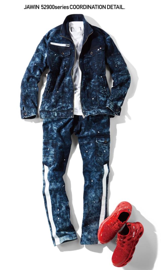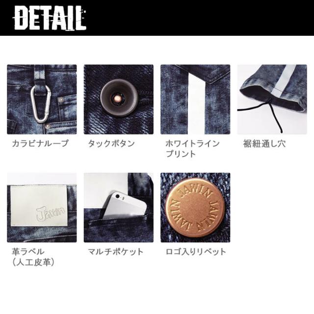 高強度ナイロン糸を使用し、伸縮性に優れたJAWINストレッチデニムリーズ。