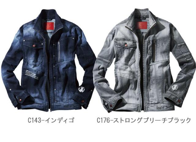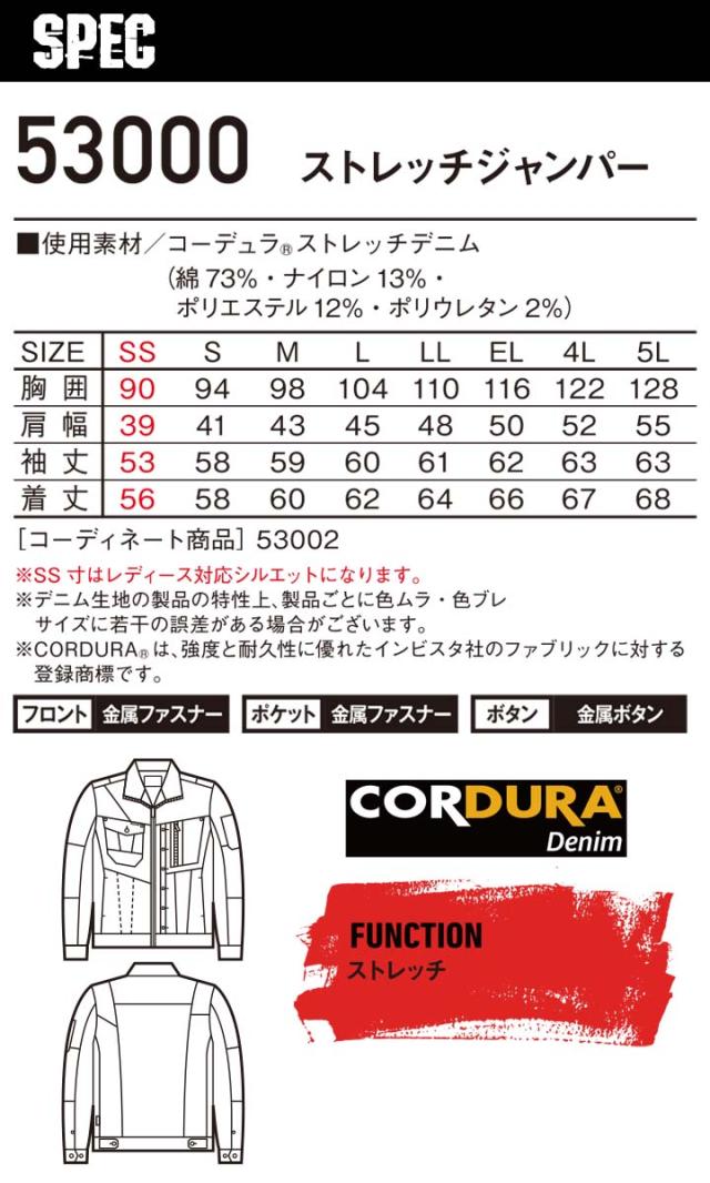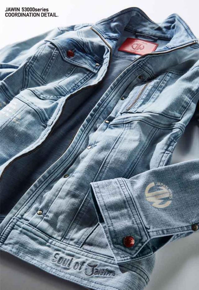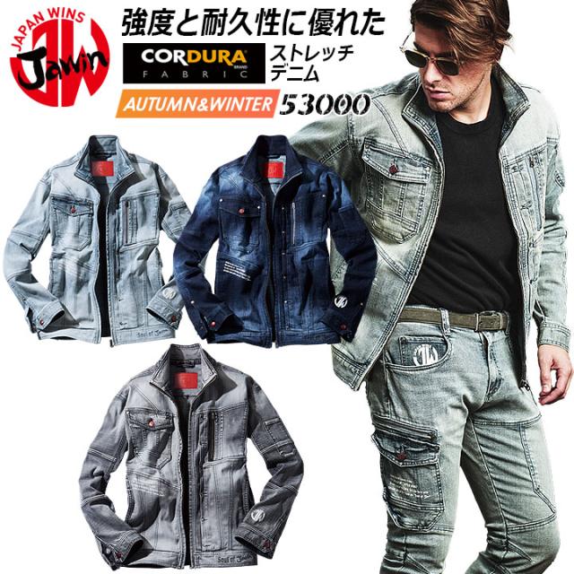 ジャウィン 作業服 長袖ジャンパー 53000 ストレッチ デニム ジャケット ブルゾン コーデュラ 男女兼用 メンズ レディース オールシーズン 作業服 作業着 JAWIN 自重堂