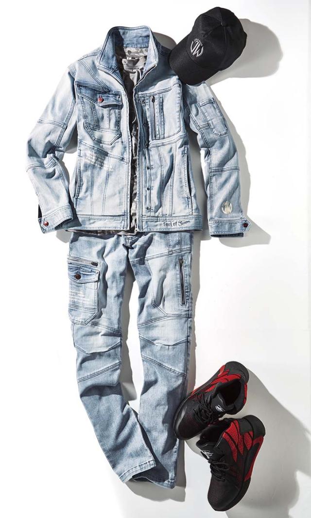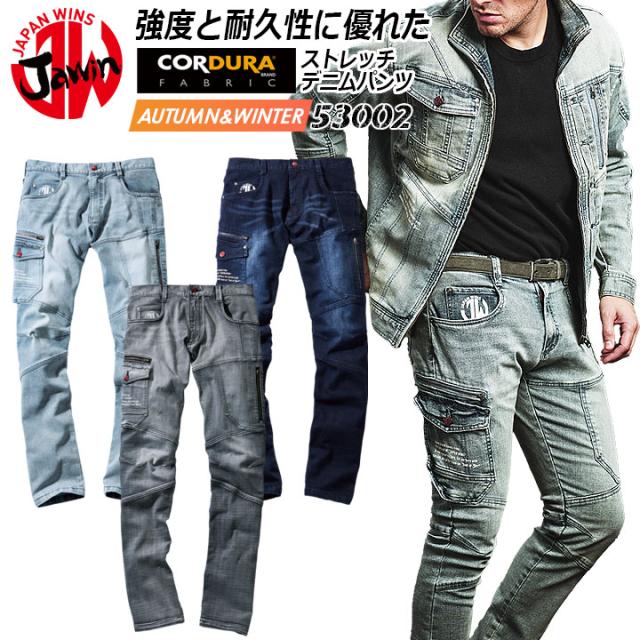 高強度ナイロン糸を使用し、伸縮性に優れたJAWINストレッチデニムリーズ。