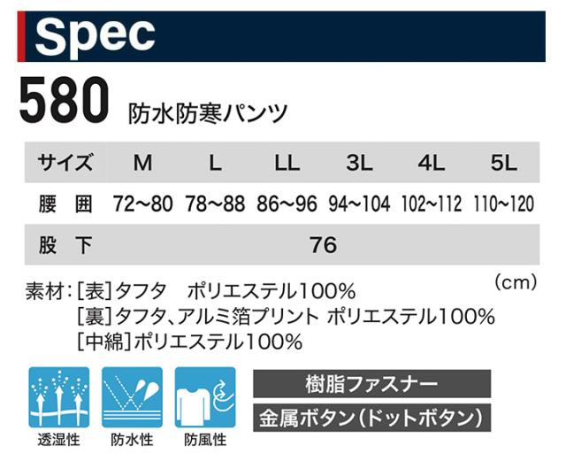 ジーベック 防水防寒パンツ 580 保温性 中綿 ズボン 反射テープ メンズ 作業服 作業着 防寒着 防寒服 XEBEC