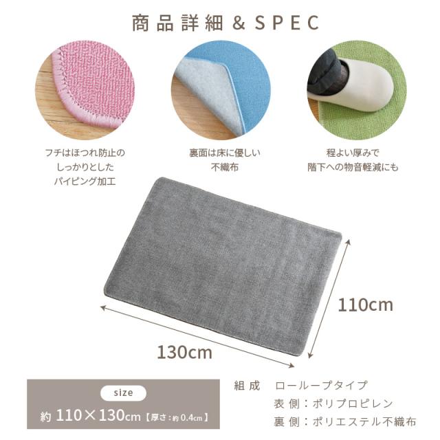デスクカーペット 110×130cm 選べる5色 学習机 デスクマット 子供 傷防止 無地 床 小さめ シンプル ラグ ルームマット