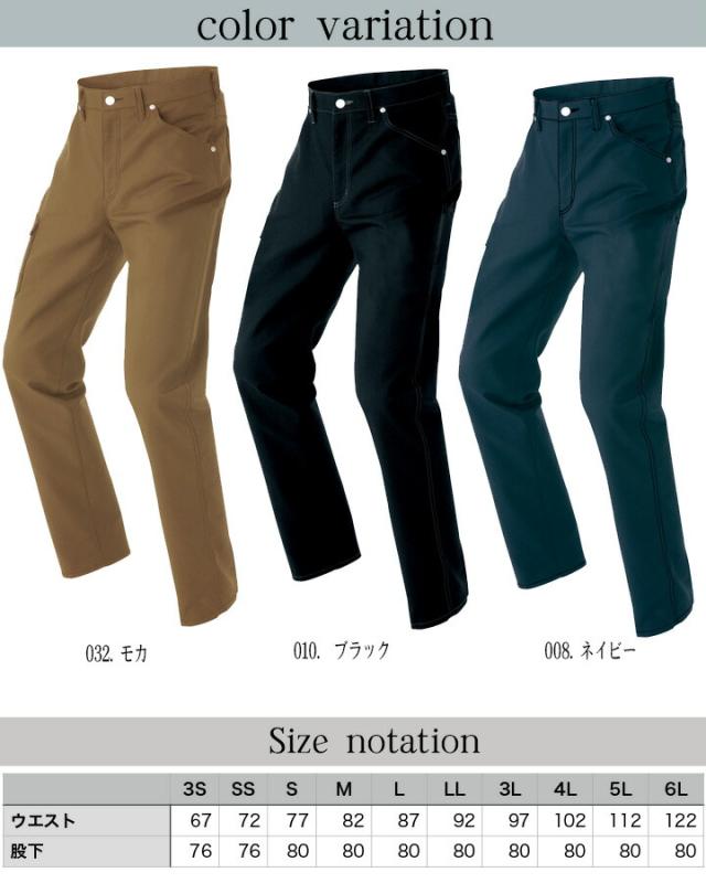 軽くて動きやすいストレッチ素材採用のワークパンツ。