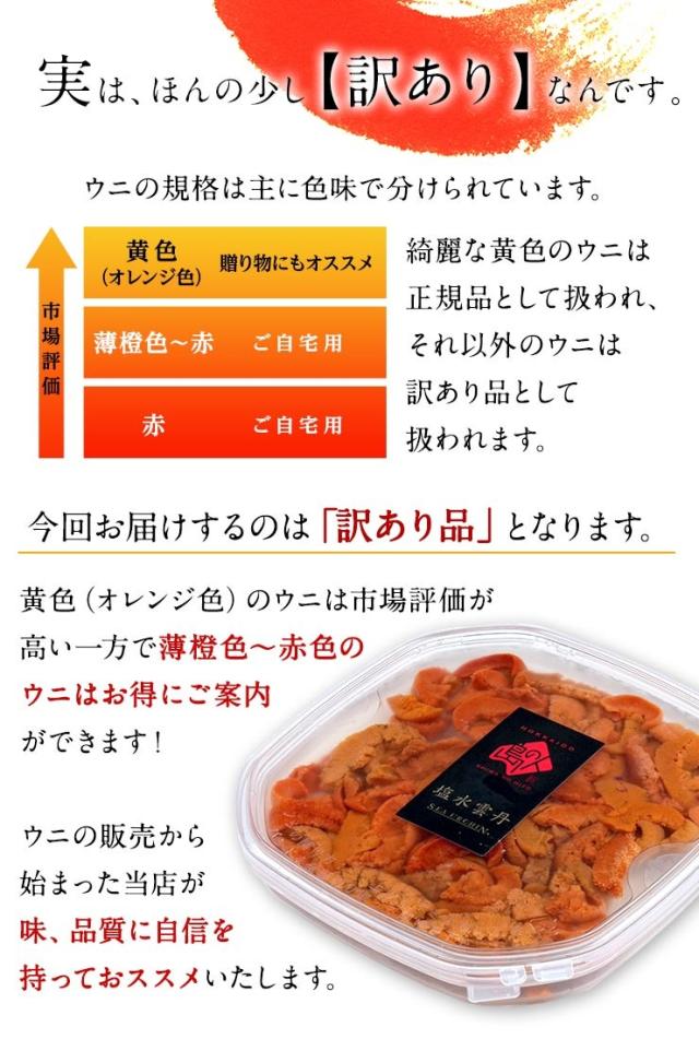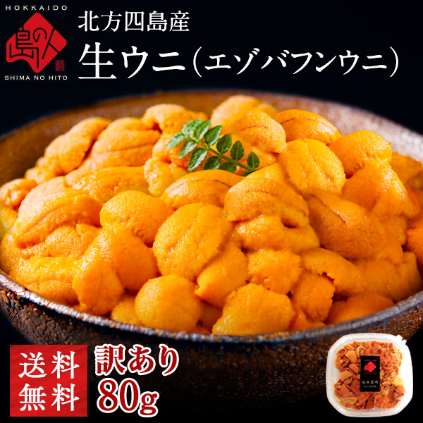 うに 北方四島産 無添加 天然生エゾバフンウニ 80g【送料無料】【色が赤い訳あり品】北海道 生うに 塩水 パック 雲丹 バフンウニ 海鮮 食べ物 食品 お取り寄せグルメ