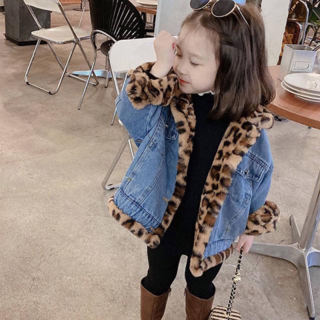 キッズ デニムコート アウター ファーコート 子供服 キッズ 女の子 ショート フェイクファー ブルゾン ヒョウ柄 レオパード 暖かい 防寒 アウター レオパード ジュニア