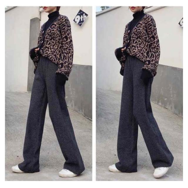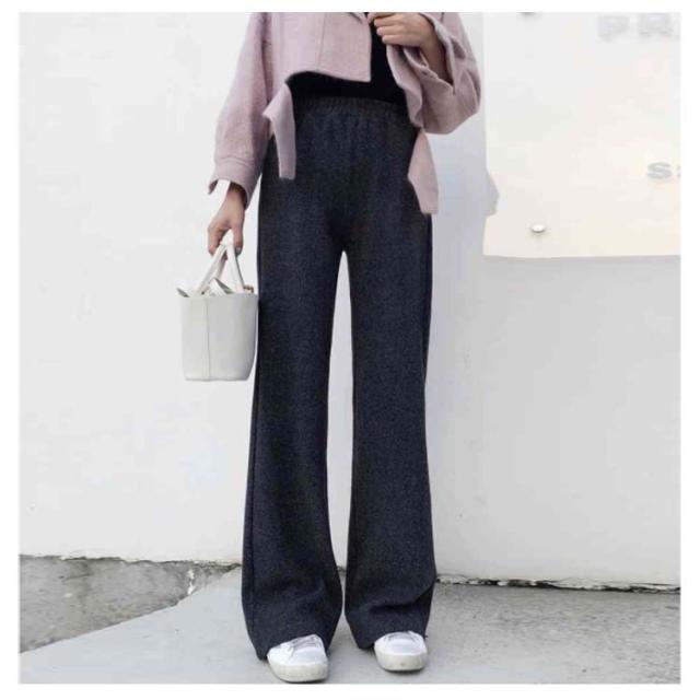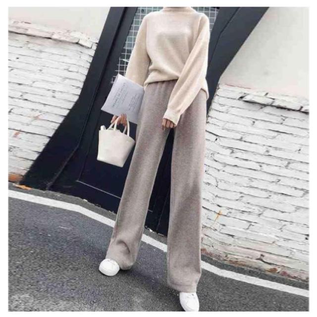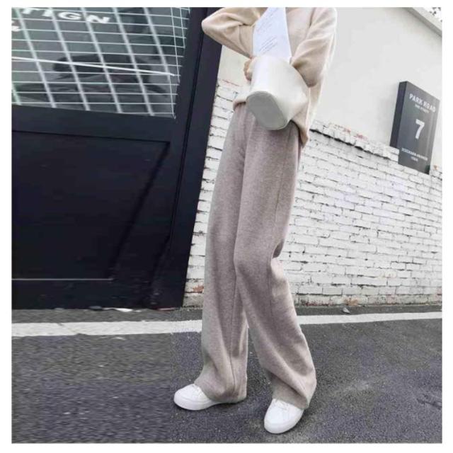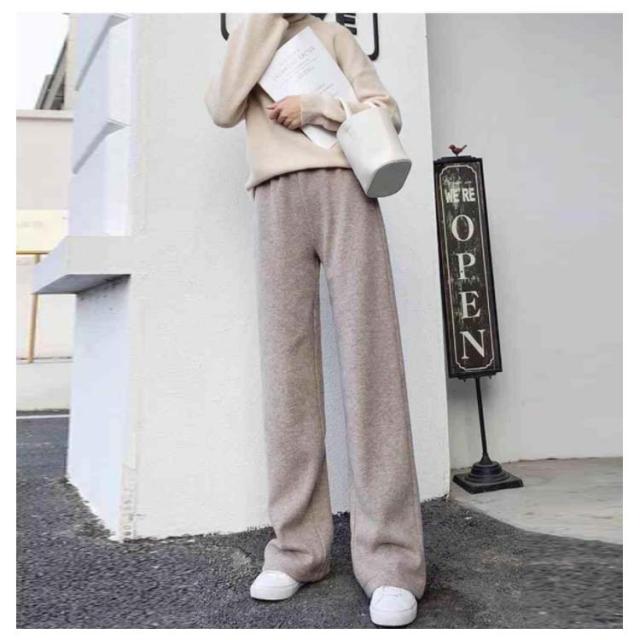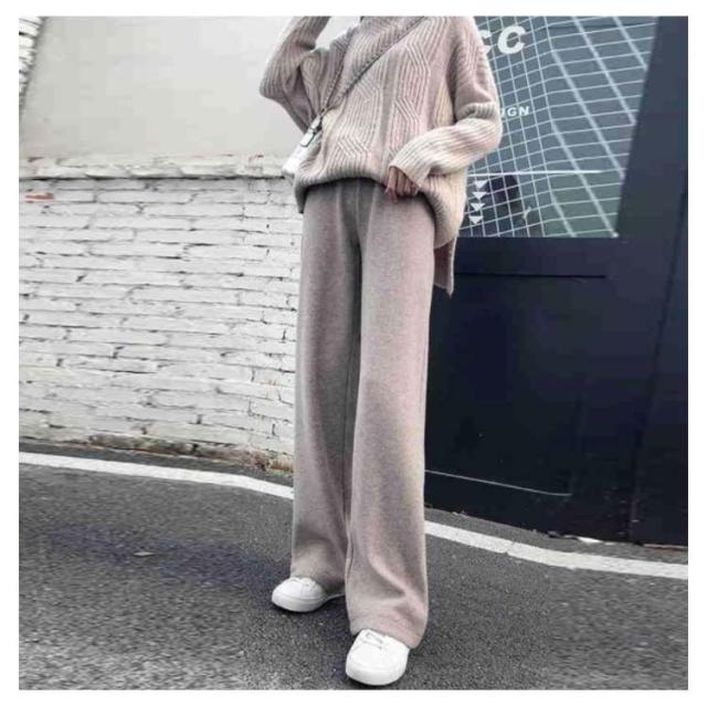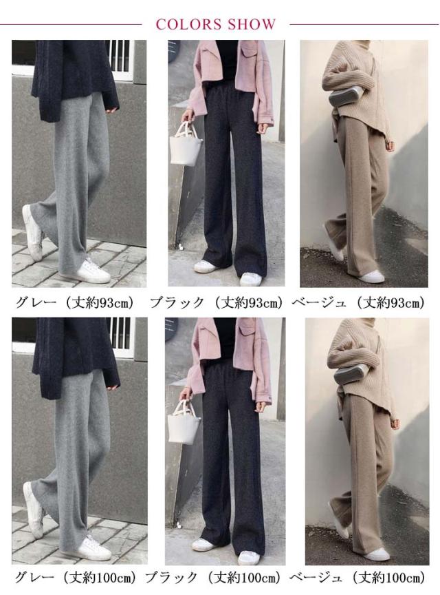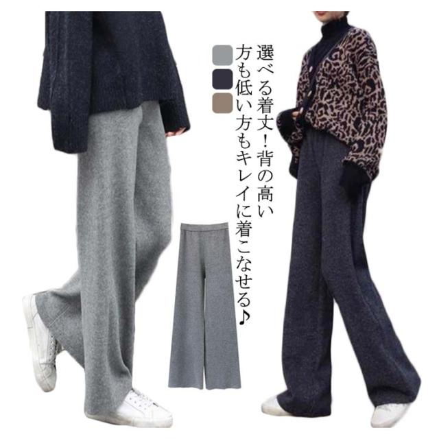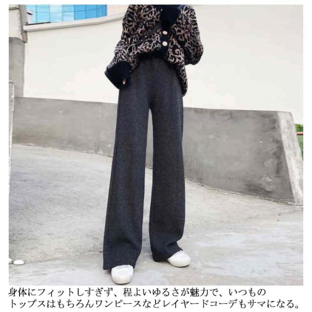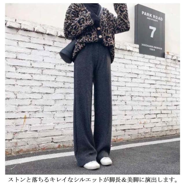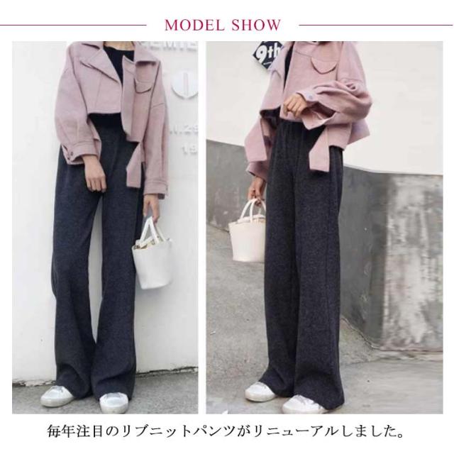 ニットパンツ 厚手 40代 ゆるパンツ リブニットパンツ ストレートパンツ レディース レディース ウエストゴム 30代 50代 秋冬 ワイドパンツ