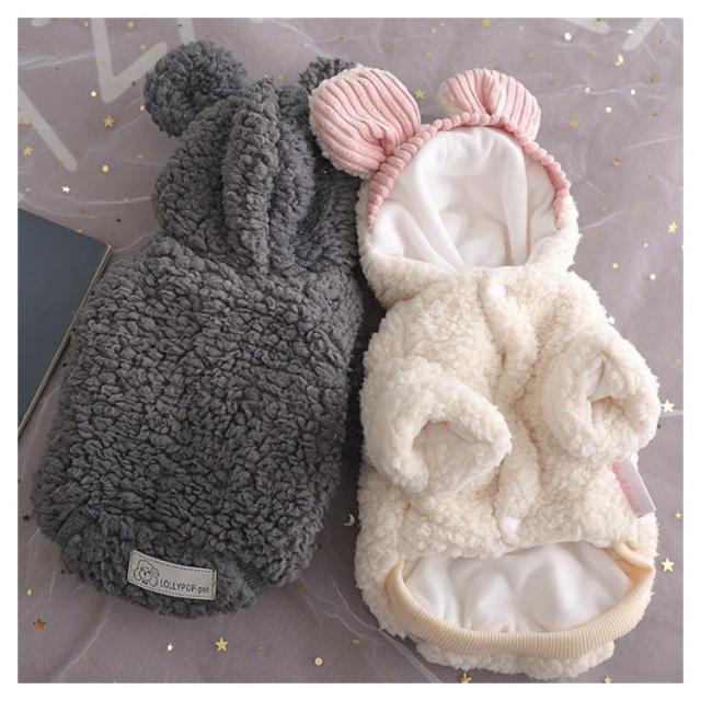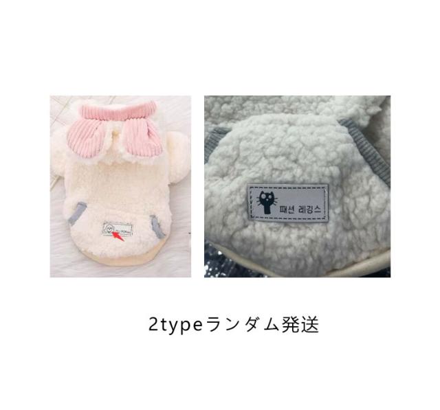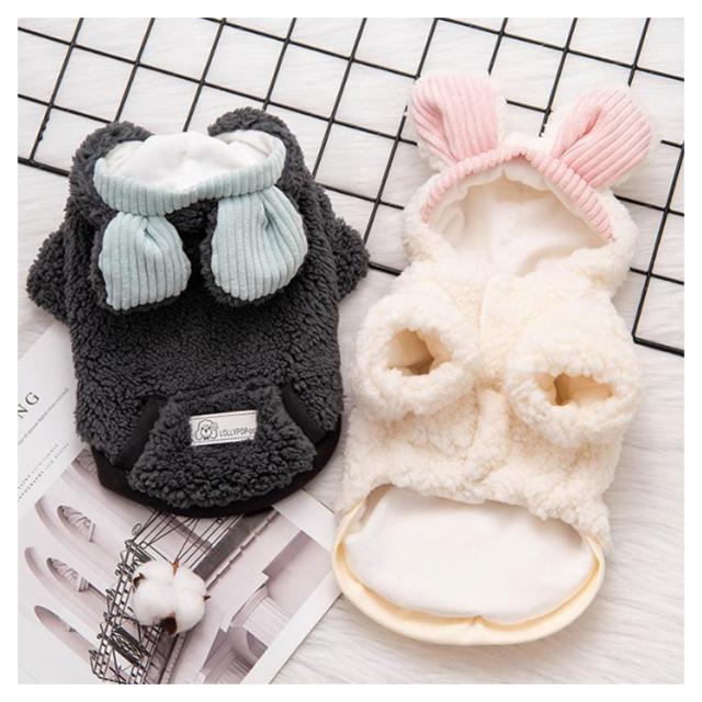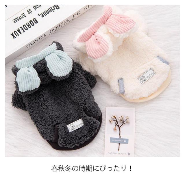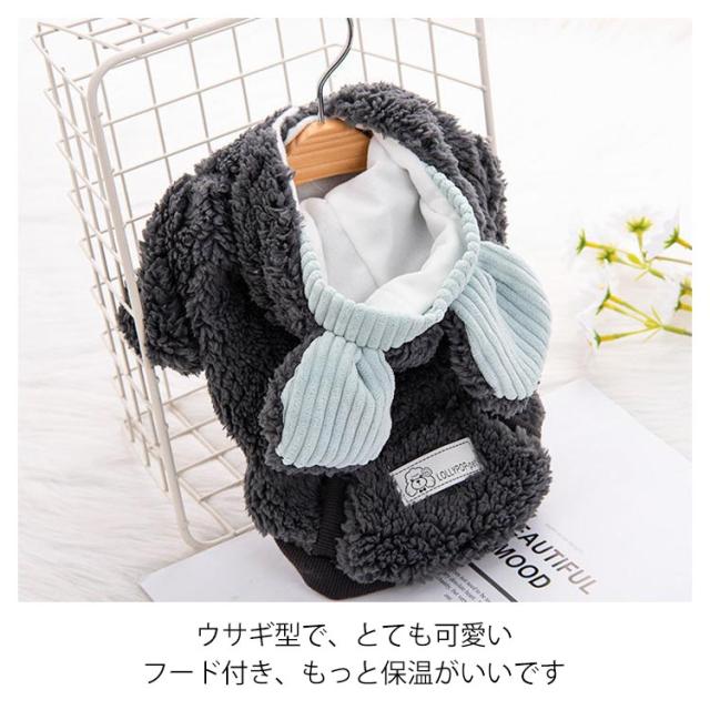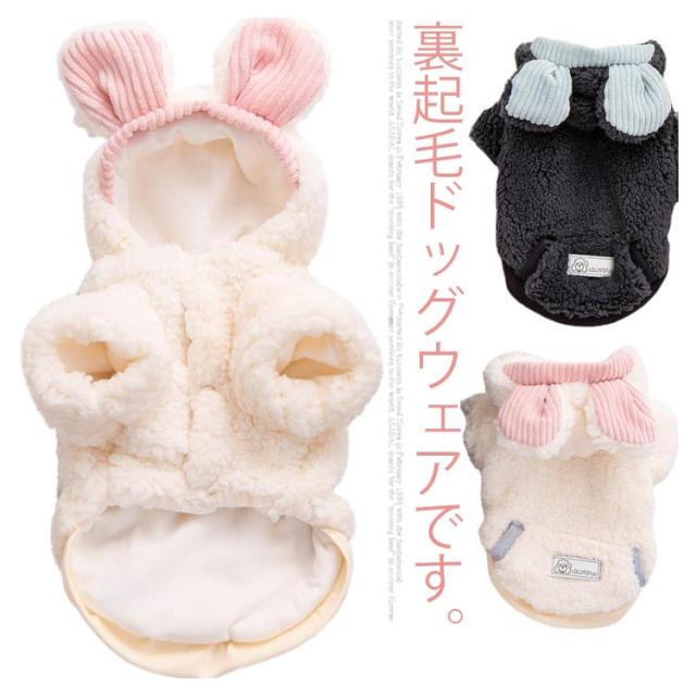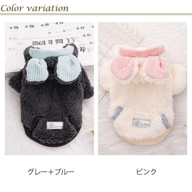 | 裏起毛ドッグウェアです。防寒対策がバッチリ、寒い時期のお散歩やアウトドアに最適です。 ウサギ型で、とても可愛い、フード付き、もっと保温がいいです。 裏素材はフワモコの裏フリースで、柔らかくてとても暖かいです。 表素材はふわふわしている生地で、着心地が抜群です。 ボタン式なので、服が苦手な愛犬や着せるのが苦手な飼い主さんにもオススメです。 春秋冬の時期にぴったり! | |