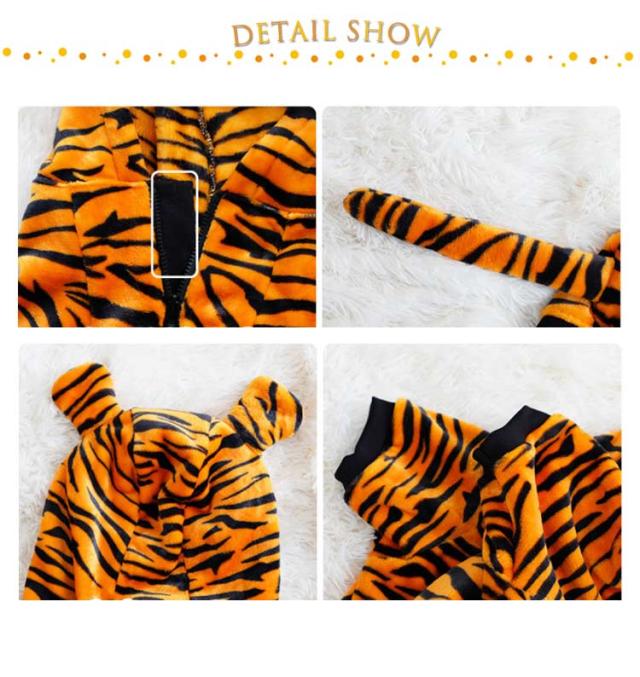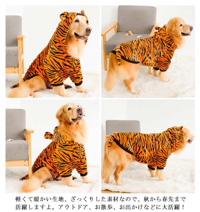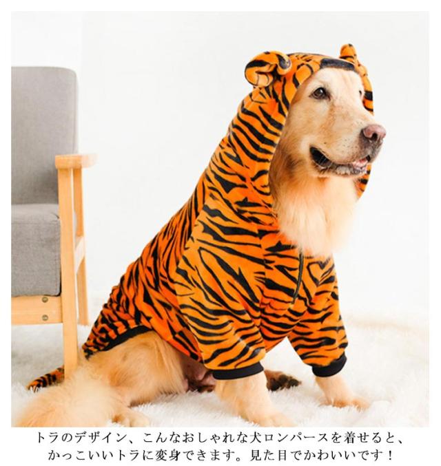 干支 ロンパース フード付き フリース 秋冬 トラ パーカー 中型犬 もこもこ ドッグウェア 大型犬 カバーオール 虎柄 虎 犬服 ハロウィン つなぎ とら 寅年 クリスマス 年賀状 ペット服 おしゃれ 寅