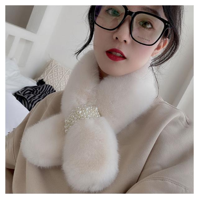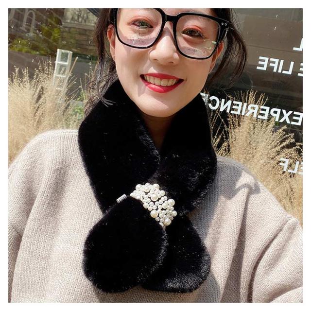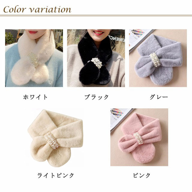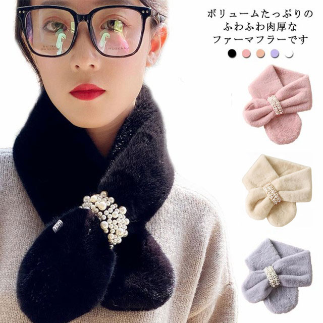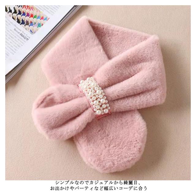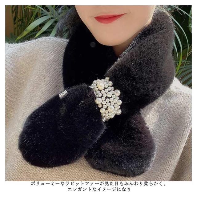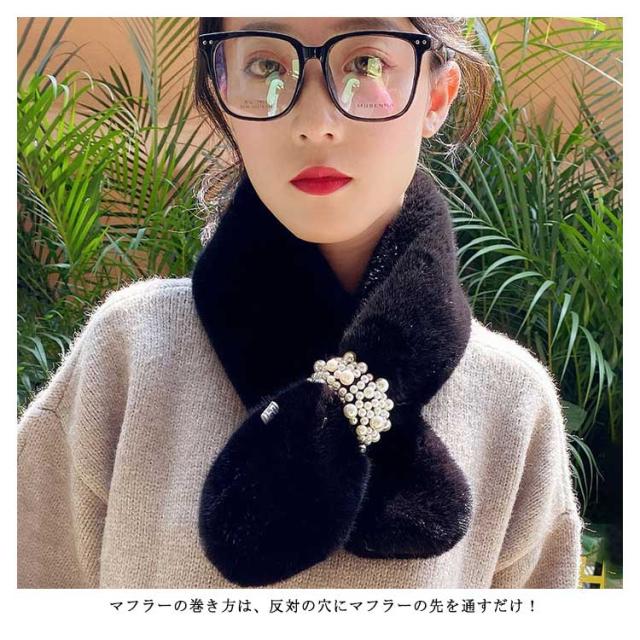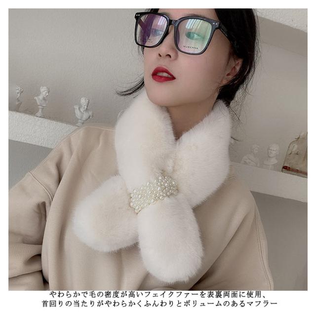 暖かい ファーマフラー 防寒 ファー ネックウォーマー フェイクファー 小顔効果 もこもこ ふわふわ あたたか 真珠飾り パール付 スヌード 付け襟 マフラー 差し込み ストール パール 防寒 レディース ボア 小物 秋 ティペット