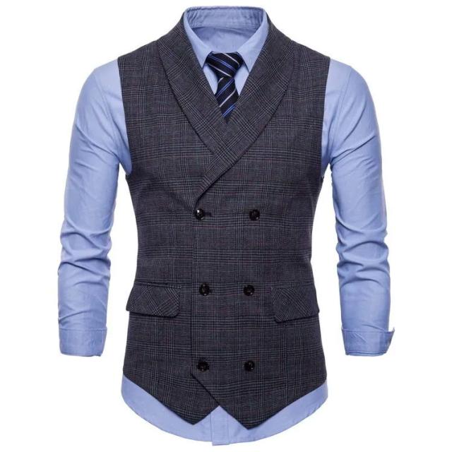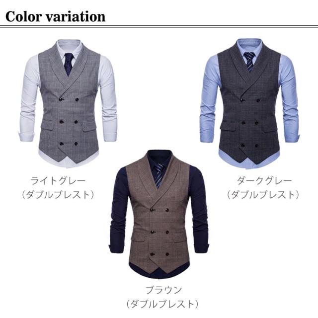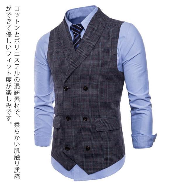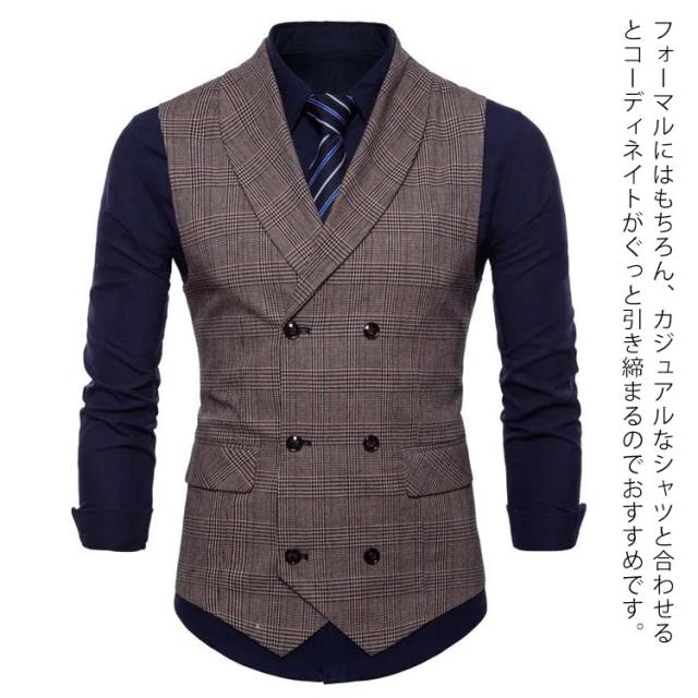 フォーマル チェック柄 ベスト ビジネス パーティー ジレ フォーマルベスト チョッキ トップス 二次会 スーツベスト ダブルブレスト 結婚式 演奏会 紳士服 ジレ 紳士 ベスト ジレベスト 発表会 3色 M-4XL スリム 襟付き フィット メンズ 春秋服